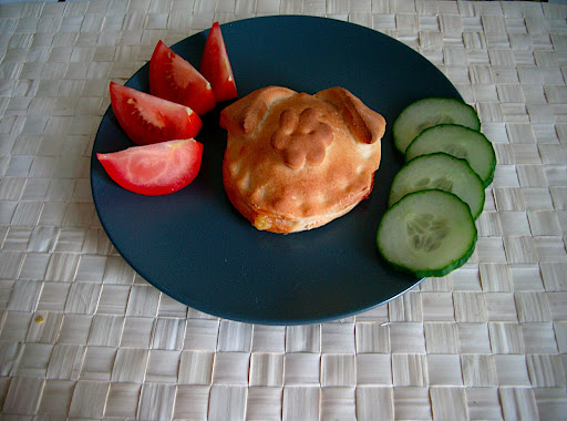 Dann den sehr klebrigen Reis zu einem Dreieck formen. Und jetzt wird es bastelig: Ein Nori Blatt so zurecht legen, dass man an einer Kante einen runden Ausschnitt vornehmen kann. Dieser sollte ungefähr die Größe des Pinguin Bauches haben. Dann oberhalb des Bauches zwei Löcher für die Augen in das Nori schneiden. Das Nori Blatt wässern und vorsichtig um das Reisdreieck legen (logischerweise so, dass das Bauchloch auch da ist, wo der Bauch sein soll). Jetzt noch zwei kleine Nori Kreise als Pupillen ausschneiden, wässern und ansetzen.